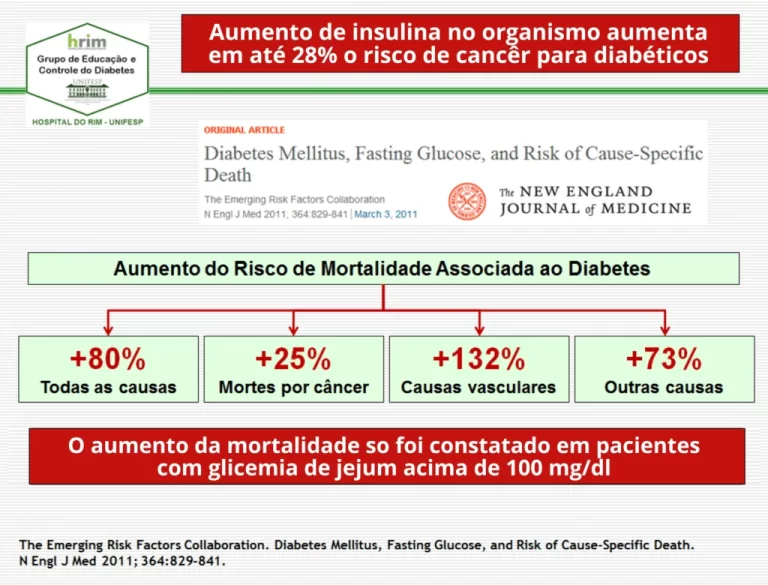 Os altos níveis de insulina destroem as células e fazem com que se dividam de forma anormal, levando à formação de tumores. Por isso, as estatísticas mostram que 25% dos diabéticos acabam desenvolvendo câncer.