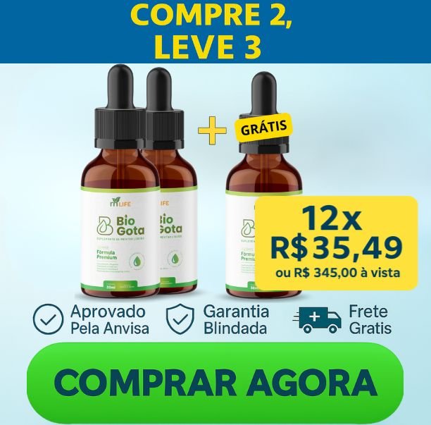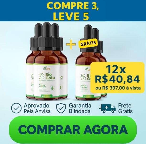 O prazo médio de entrega do BioGota é de 7 dias úteis para o Sul e Sudeste. Para as demais regiões do país, o prazo de entrega é de 9 dias úteis, normalmente entregue antes. O prazo começa após a confirmação do seu pagamento pela administradora do seu cartão de crédito ou após a confirmação do pagamento do boleto.